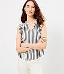 Striped Ruffle Split Neck Shell