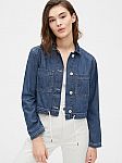 Cropped Denim Jacket with Drawcord Ties