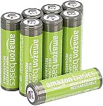 Amazon Basics 8-Pack Rechargeable AA NiMH High-Capacity Batteries, 2400 mAh $6.52