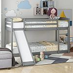 Euroco Solid Wood Twin over Twin Bunk Bed with Slide and Ladder for Kids $158